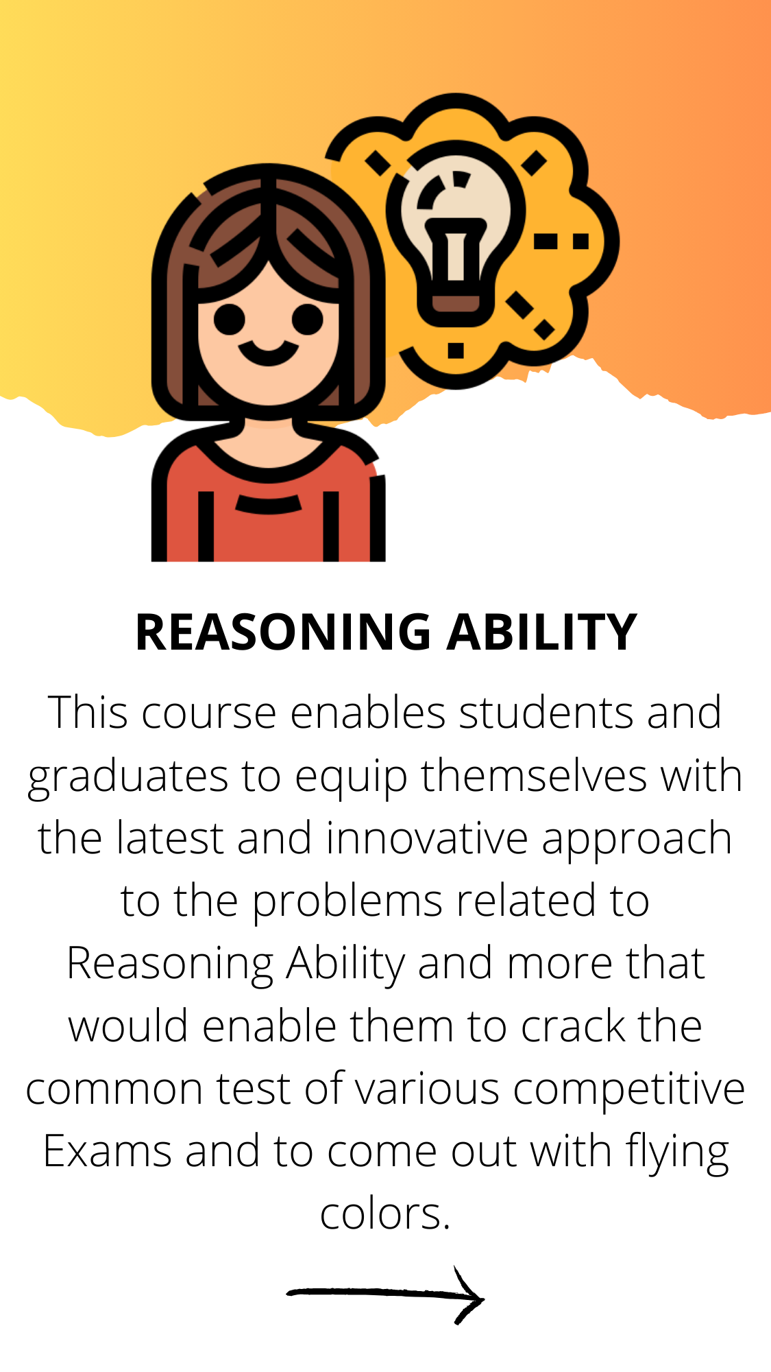 This course enables students and graduates to equip themselves with the latest and innovative approach to the problems related to aptitude and reasoning sections and more that would enable them to crack the common test and to come out with flying colors.